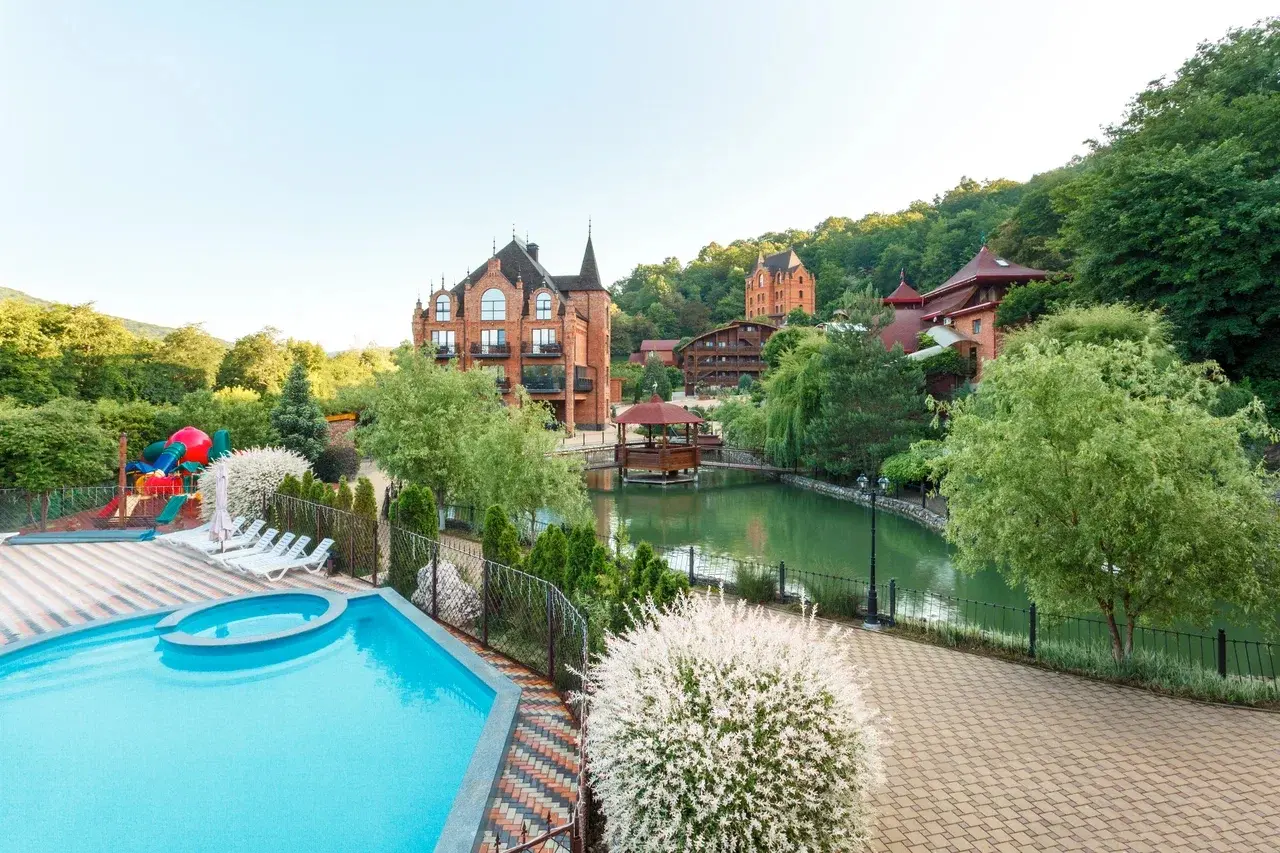Эксклюзивный ландшафтный дизайн, утопающие в зелени пруды с грациозными лебедями, горный источник с кристально чистой водой и живой уголок — место, где природа становится искусством.