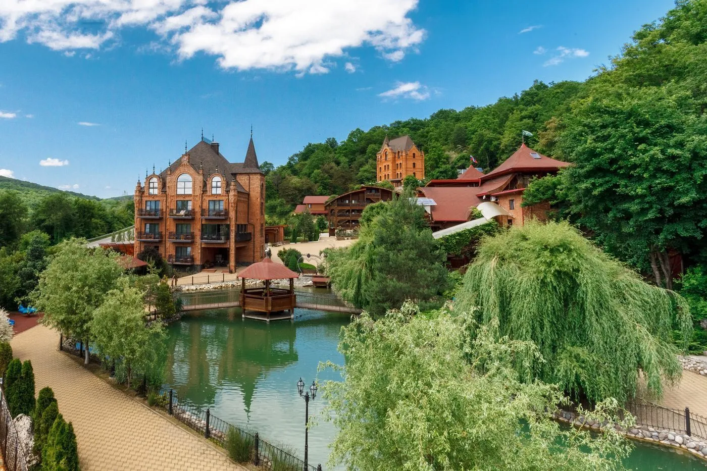 Гостям предлагается выбор комфортных номеров, включая уютные шале с кухнями и вип-коттеджи с индивидуальными бассейнами. В стоимость проживания включены завтраки и безлимитное посещение бассейнов и СПА-зоны. Для семей с детьми предусмотрены игровые площадки, детская комната с лабиринтами и развивающими зонами, а также услуги аниматоров, которые позаботятся о досуге малышей.