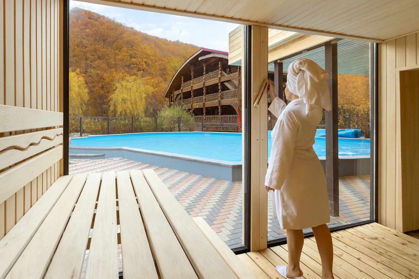 Каждый ваш вздох наполняется свежим горным воздухом, а виды просто захватывают дух! После плавания побалуйте себя расслабляющей сауной — идеальный способ восстановить силы после активного дня.