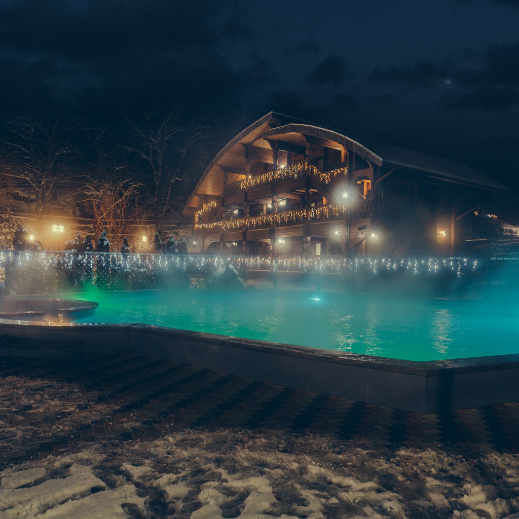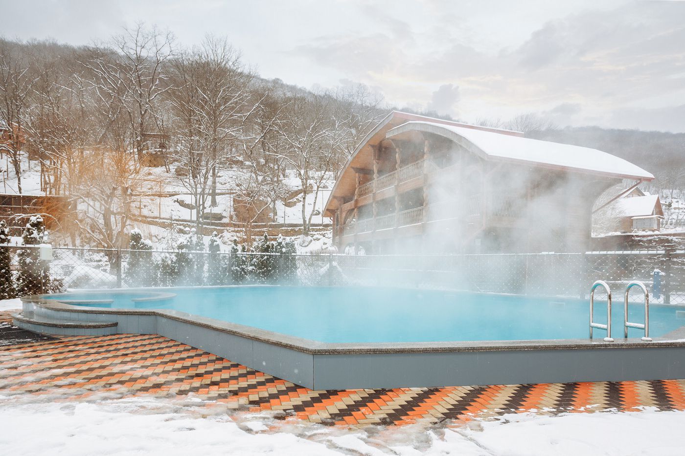Даже зимой, когда вокруг сверкает снег, вы можете наслаждаться нашим бассейном, в котором температура воды достигает +37°.