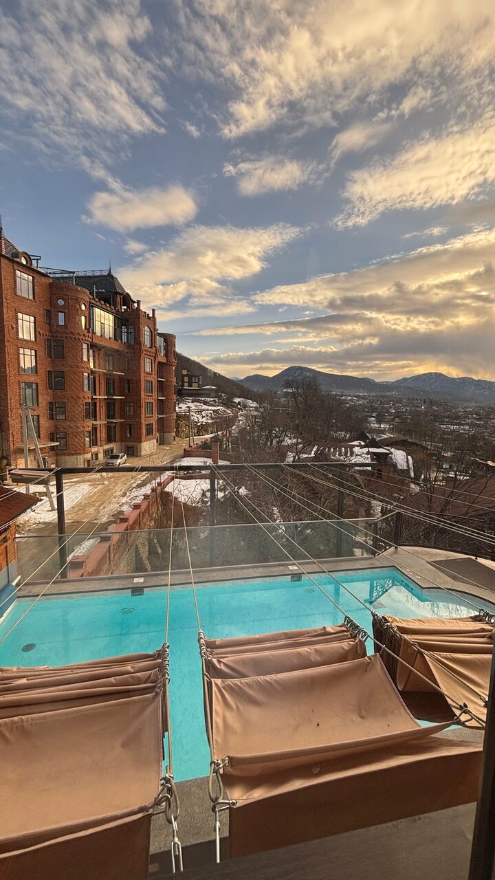 Как я мечтала у Вас побывать!!! Насладиться Вашим гостеприимством🌈✨🎉 Ребенок загадал увидеть снег и было решено воплотить его желание в реальность💪🔥 Опомнилась, когда номер был уже забронирован на нужную дату🙈 это тот случай, что ты не знаешь, когда ты побываешь в этом месте, но план уже есть, что делать и куда идти😂😂😂 И вот мы приехали🎉🎉🎉 оформляемся на ресепшене и пошел снег🎉🎉🎉 фантастика🎉🎉🎉 сколько эмоций🎉🎉🎉 Номер у нас был в спа-комплексе. Смутил только подьем к этому, зданию. Но нас обрадовали, сказав, что можно по территории трансфер заказывать. Шутка это или нет, не знаю. Но актуально! Номер превосходный. Чистый. Все есть, добавить нечего😂 Бассейн нам открывали по первому требованию: вечером, ночью, утром( есть расписание работы бассейна, уточняйте). Спасибо большое администраторам за отзывчивость и желание всегда помочь с радостью❤️ В ресторане были на ужине и завтраке. Все вкусное, свежее. Каждый остался доволен, особенно 2-х летний малыш, а это главный эксперт на отдыхе🥇 Детская комната стерильная, все игрушки в идеальном состоянии, много запакованных новых на замену, если вдруг что. Отдельно хочется выделить команду, работающую в данном месте. Ребята, Вы лучшие🔥🥇!!! В Вас столько душевности, желания помочь, порадовать словом , делом, не потому что это от Вас просит руководство, а потому что каждый из Вас уникален и добр❤️!✨рекомендую к посещению✨ Всем благополучия ✨